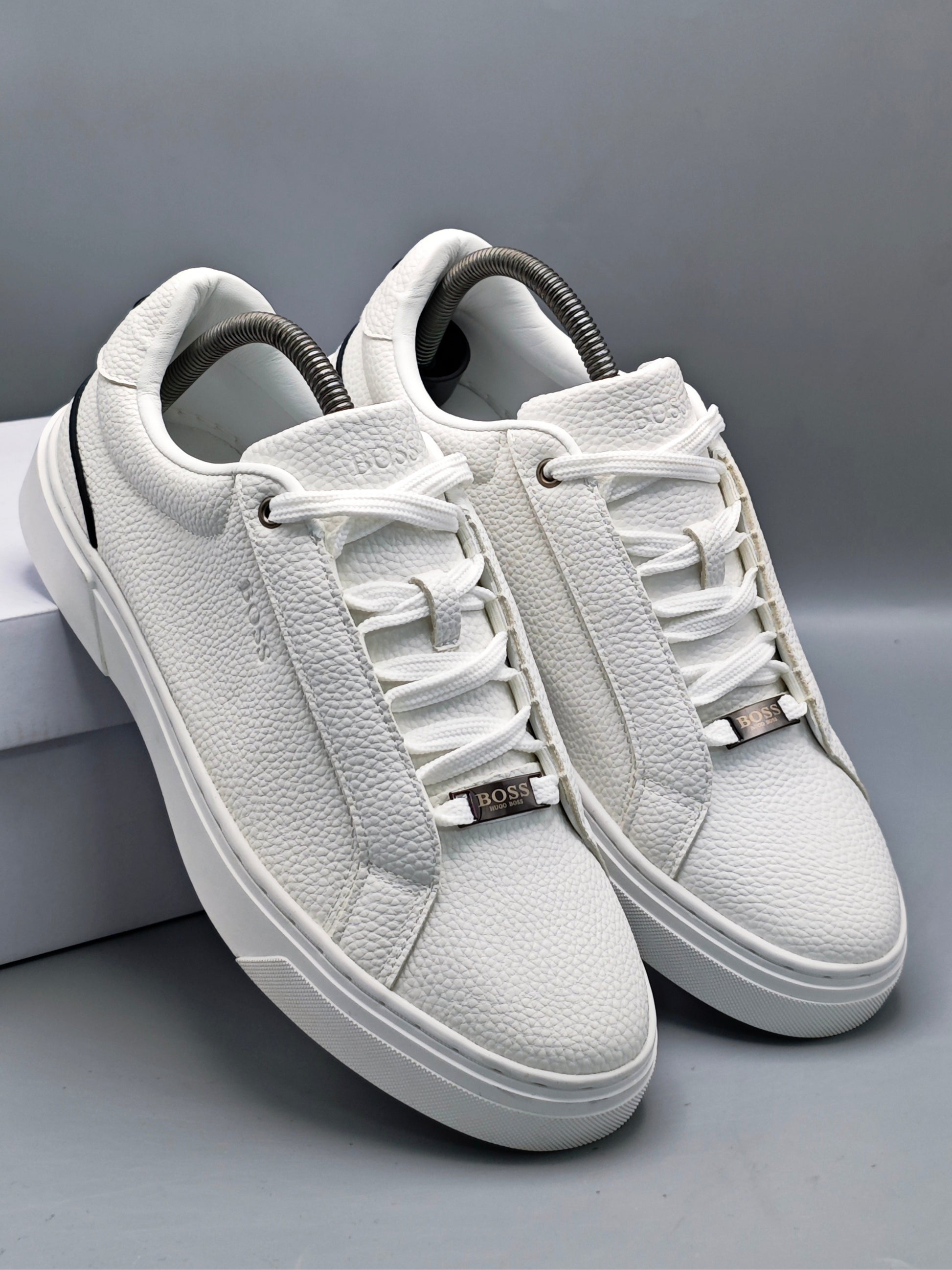 Los boss sneakers low premium combinan la elegancia atemporal con la comodidad del calzado moderno. Fabricados con cuero texturizado de alta calidad, ofrecen un diseño limpio, versátil y sofisticado que refleja el auténtico estilo europeo.