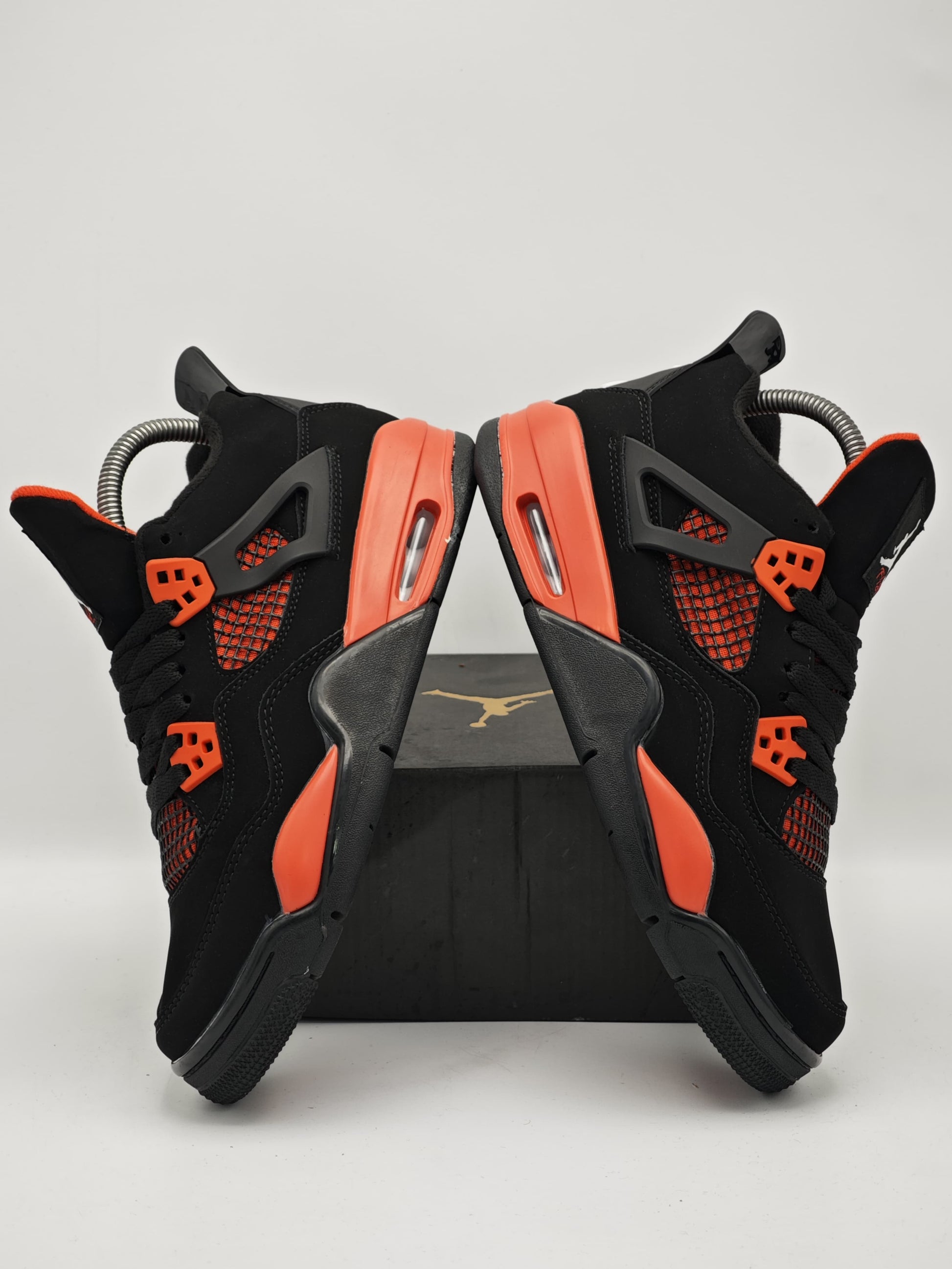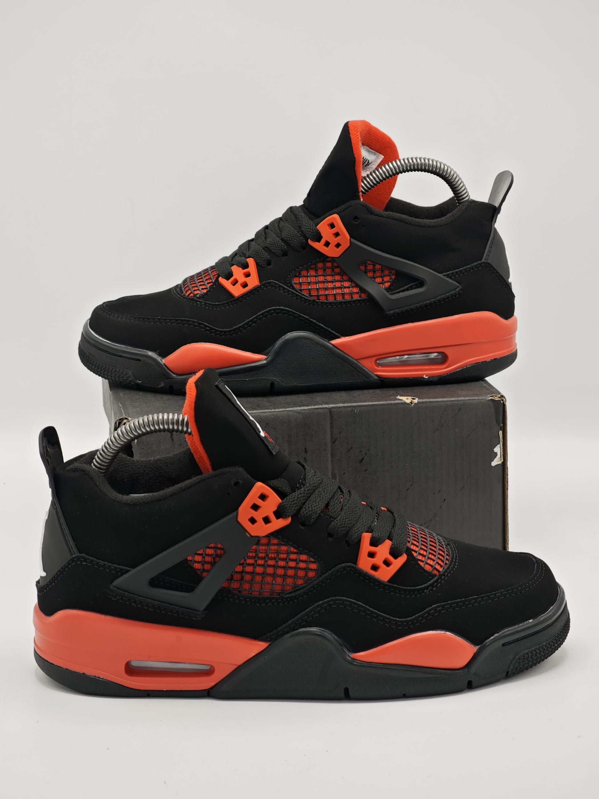 Con una combinación de negro intenso, rojo vibrante y detalles en gris, estas Jordan 4 ofrecen ese look audaz que combina con todo. El upper de nobuk sintético, junto a la malla ventilada y la suela con cámara de aire visible, garantizan comodidad y estilo de alto impacto.