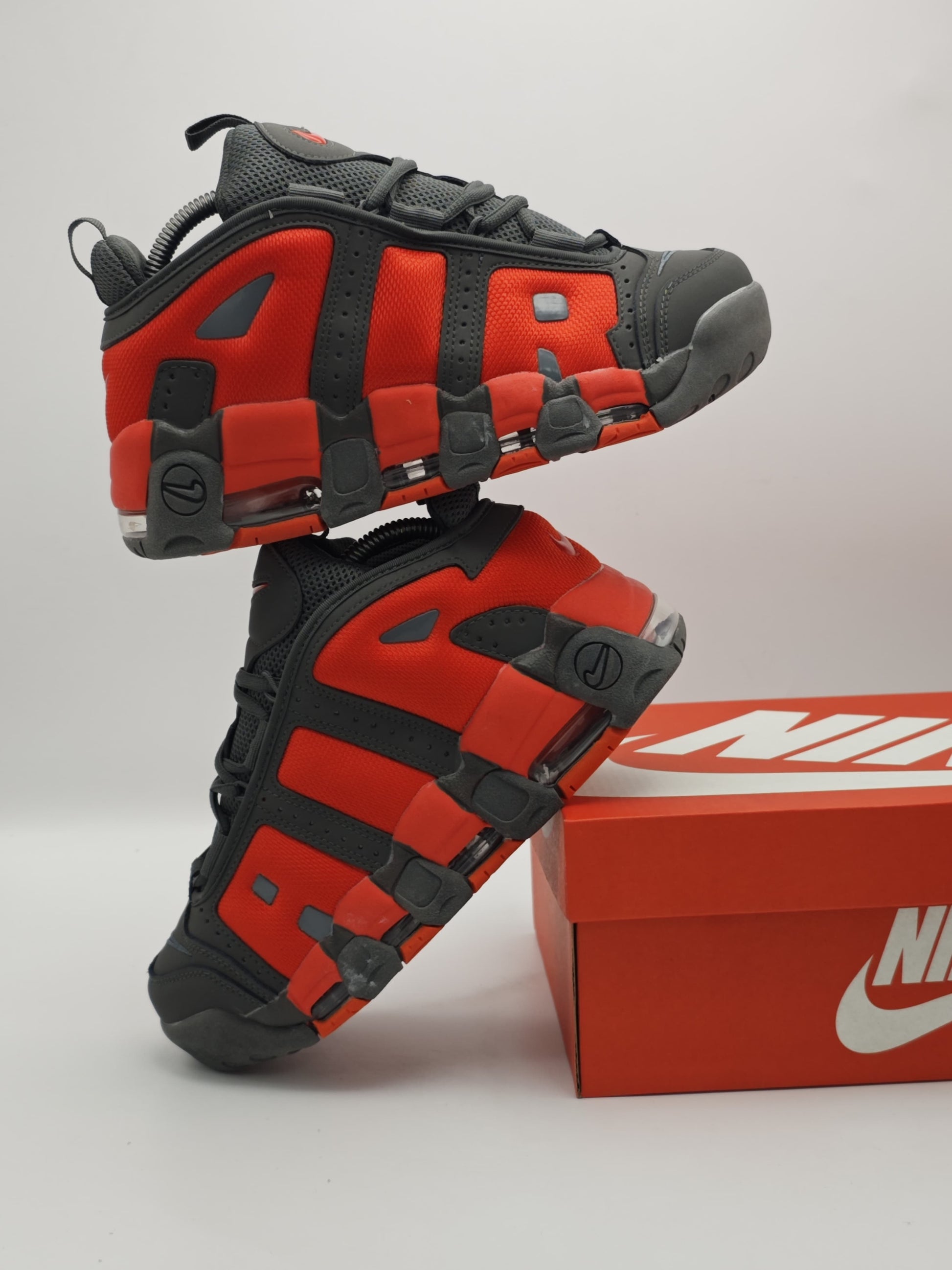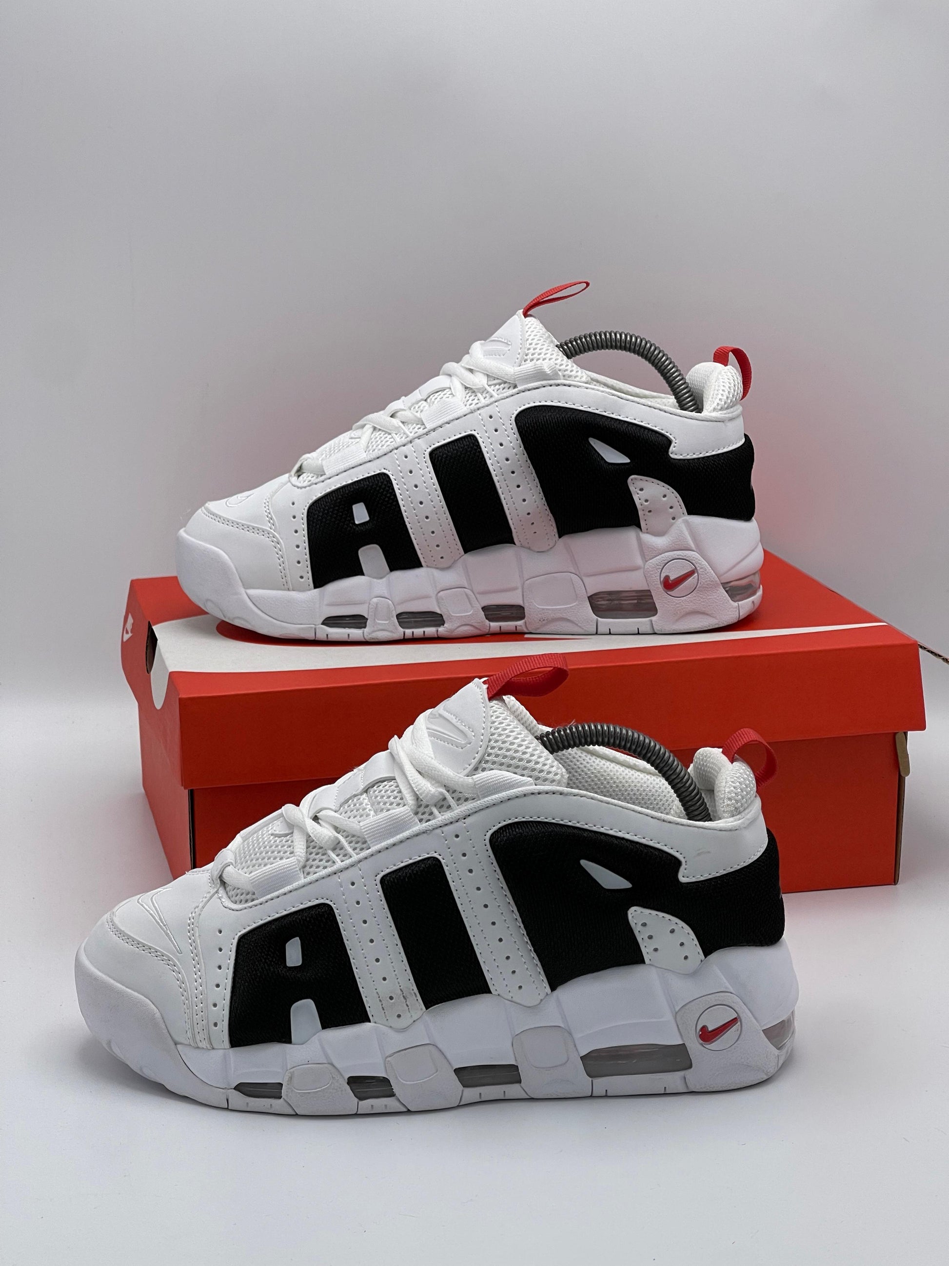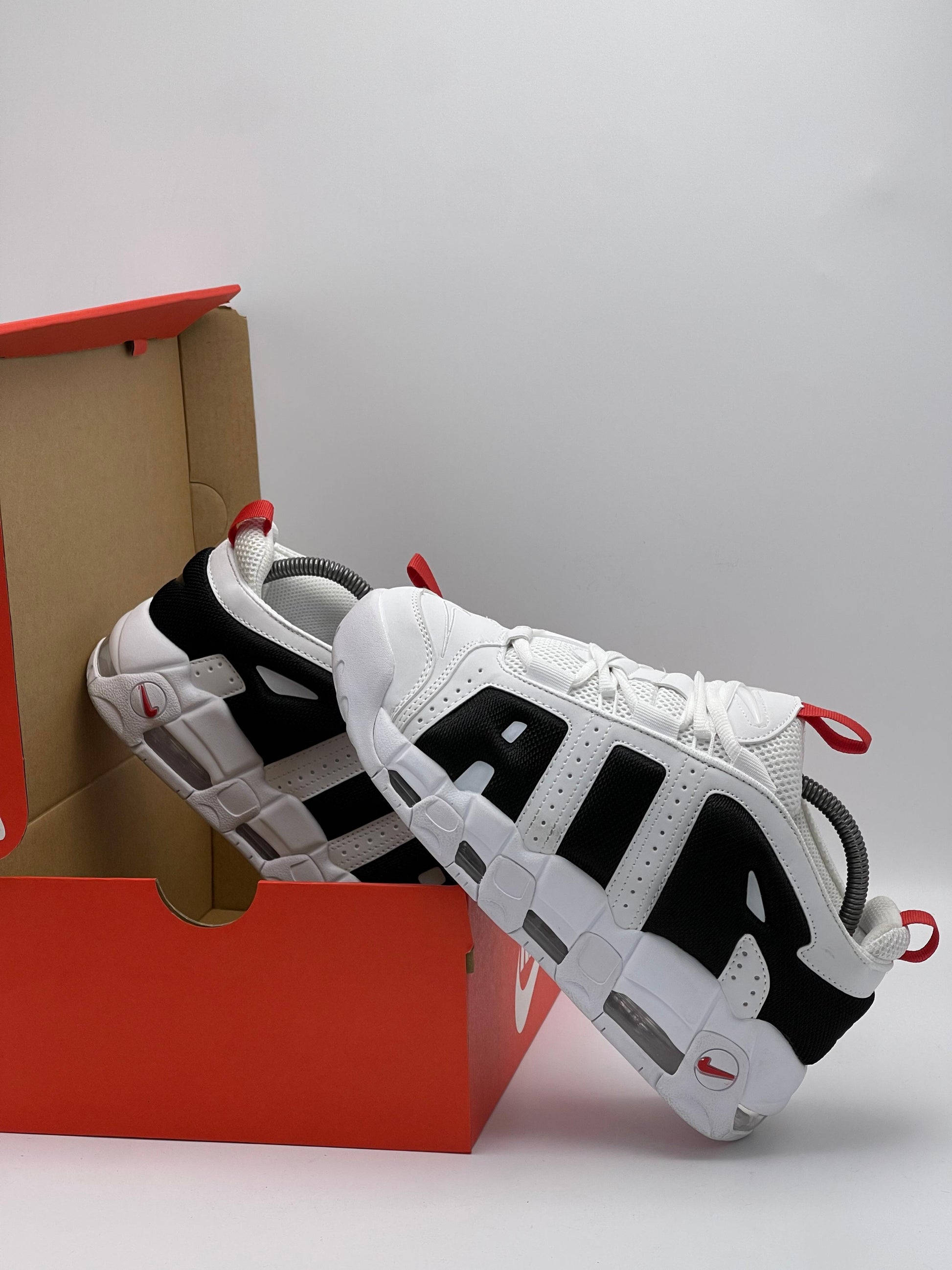 Los Nike Air More Uptempo son mucho más que tenis, son un ícono de los 90s que marcó una generación en las canchas de baloncesto y en la cultura urbana. Su diseño inconfundible con las letras AIR en gran tamaño y su mezcla de colores blanco, negro y rojo hacen de este par un imprescindible para los amantes del estilo retro y auténtico.