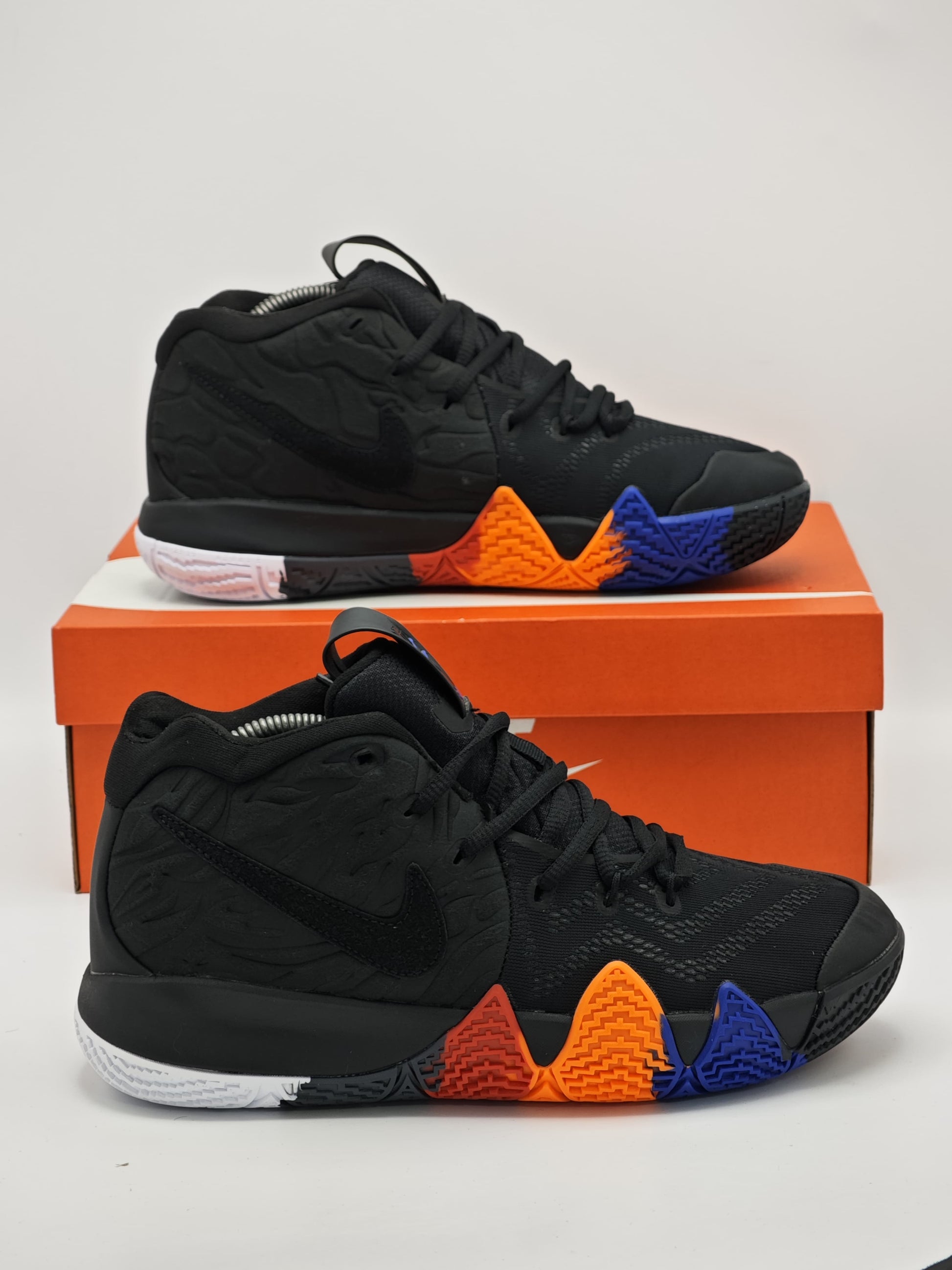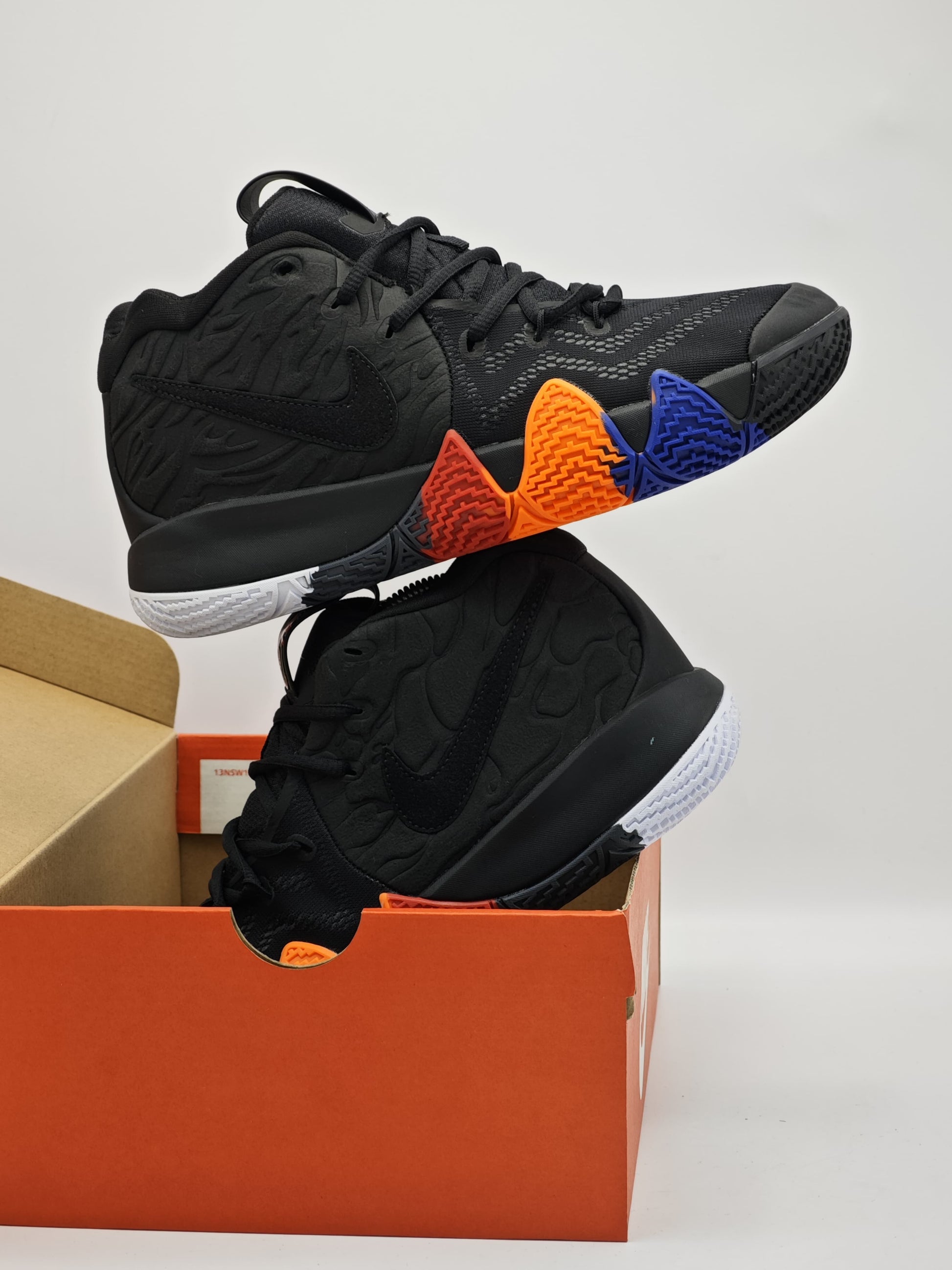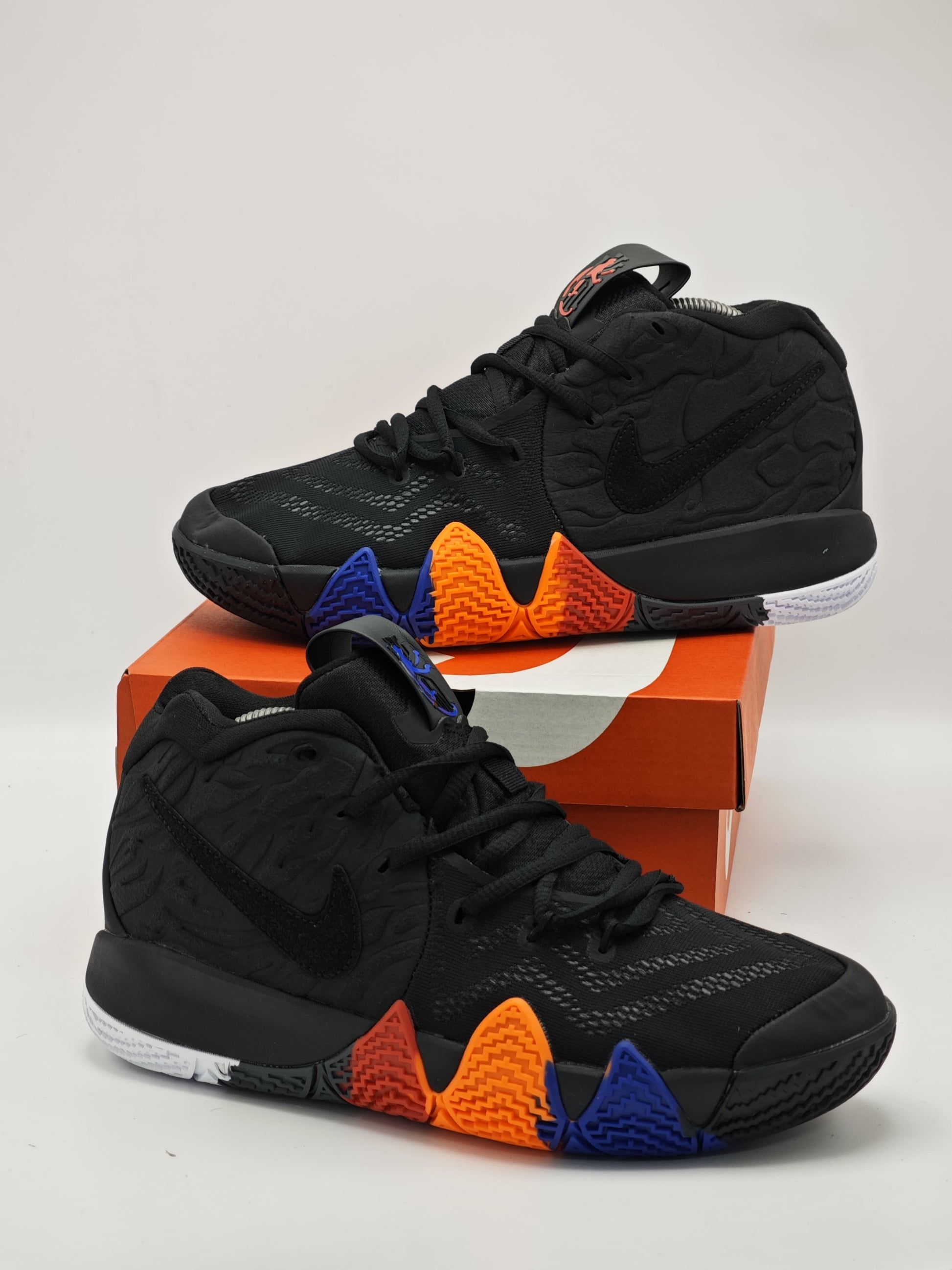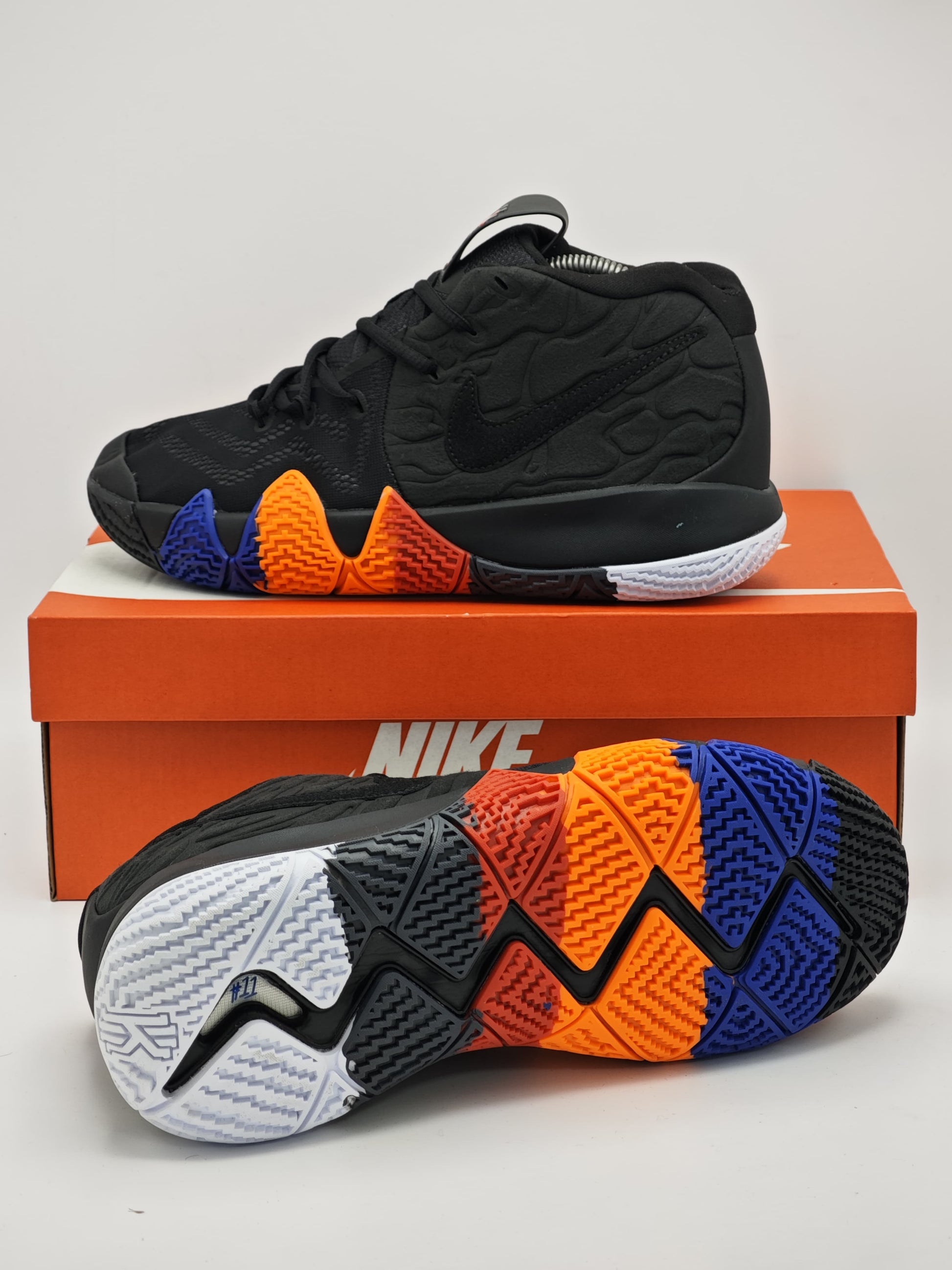 Para los que aman el juego tanto como el estilo, llegan los Nike Kyrie 4 “Multicolor Outsole”, un clásico renovado que rinde homenaje a la creatividad de Kyrie Irving. Con un upper completamente negro, estos sneakers contrastan de forma poderosa con una suela multicolor vibrante en tonos blanco, negro, naranja, azul y morado, brindando una estética llamativa y única.
