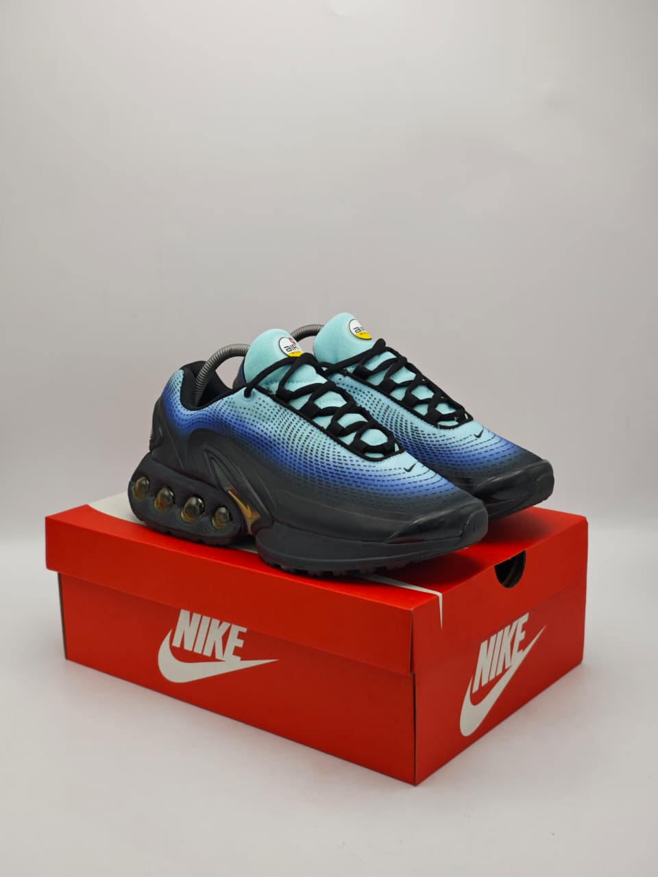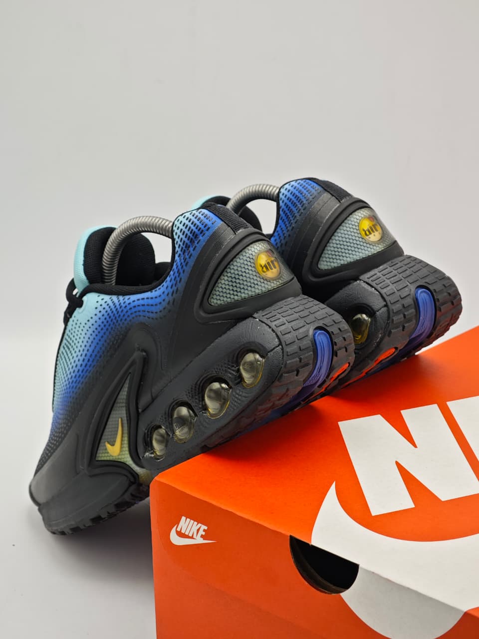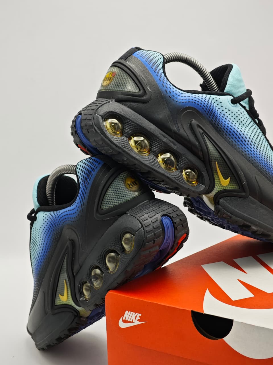 Su capellada en sintético perforado garantiza ligereza y ventilación, mientras que la famosa tecnología Shox en la mediasuela proporciona amortiguación reactiva y un look inconfundible. El degradado en tonos azul y negro crea un efecto moderno que resalta en cualquier outfit.