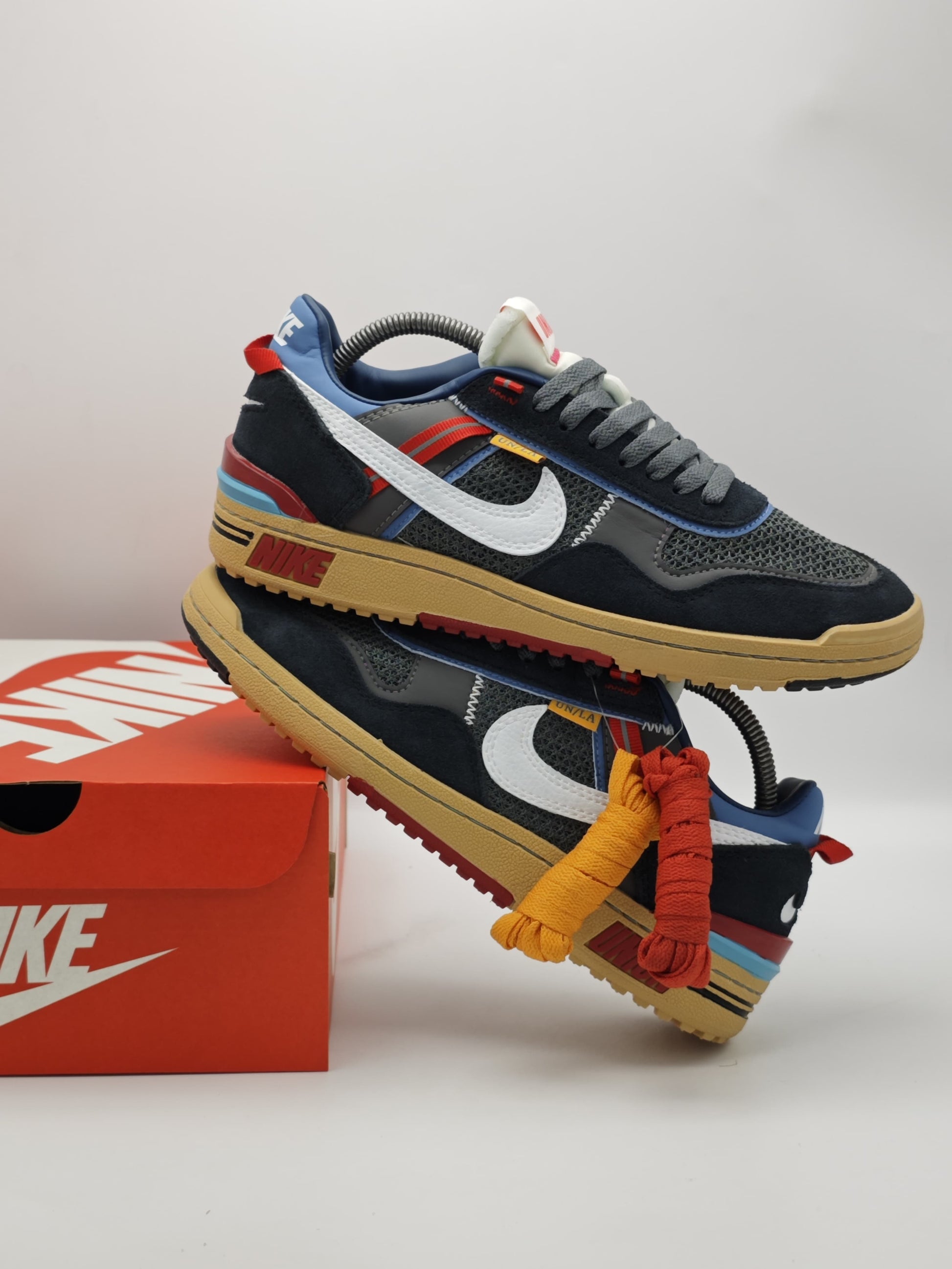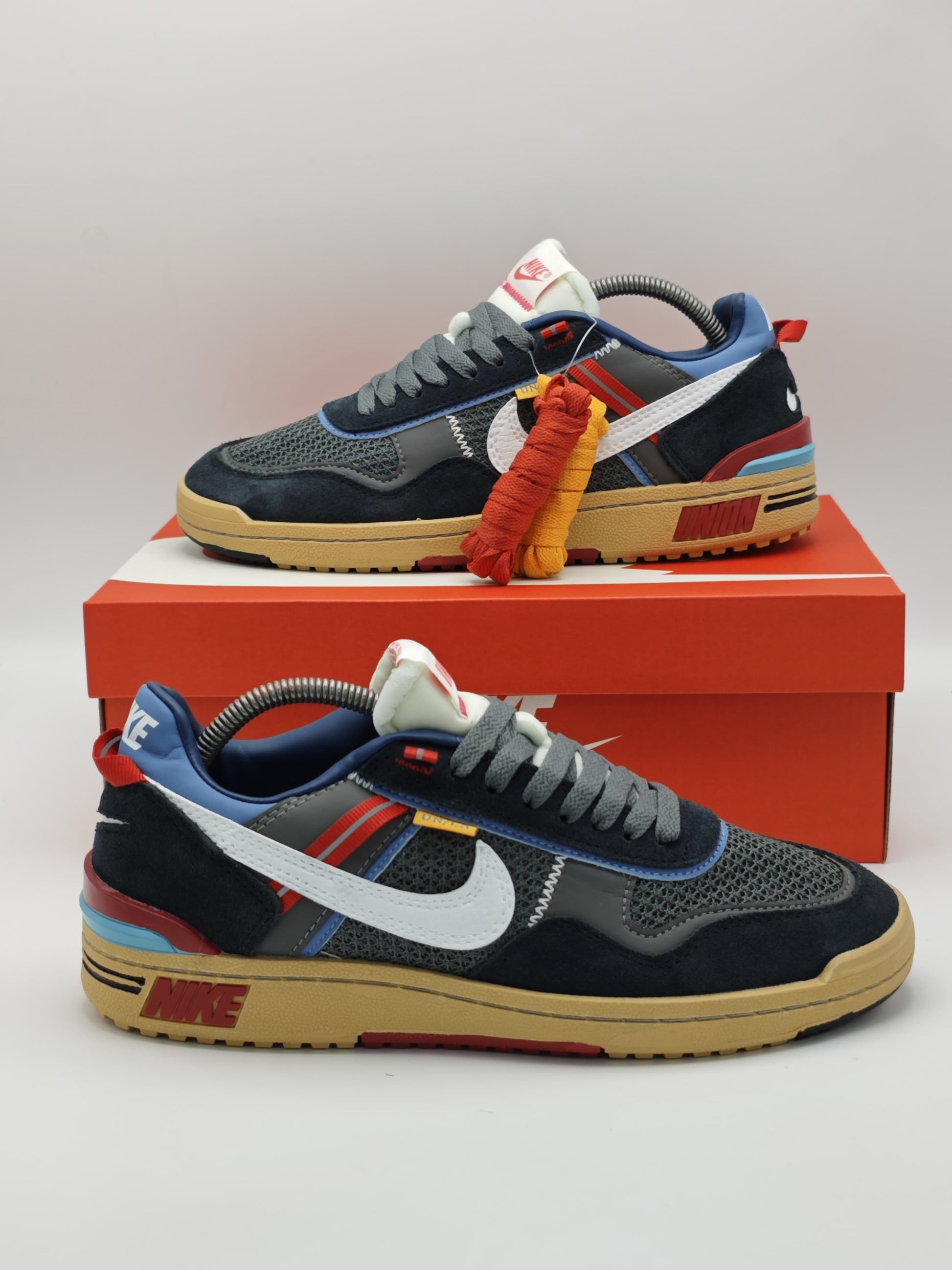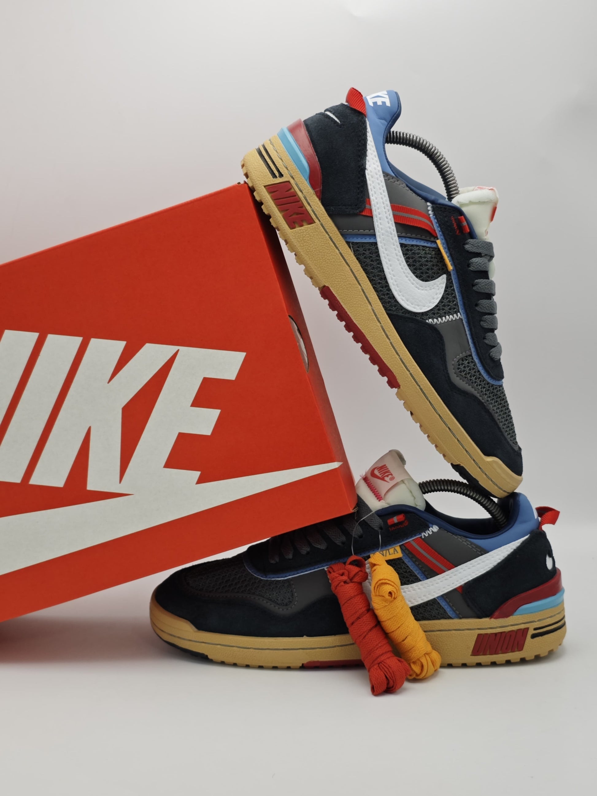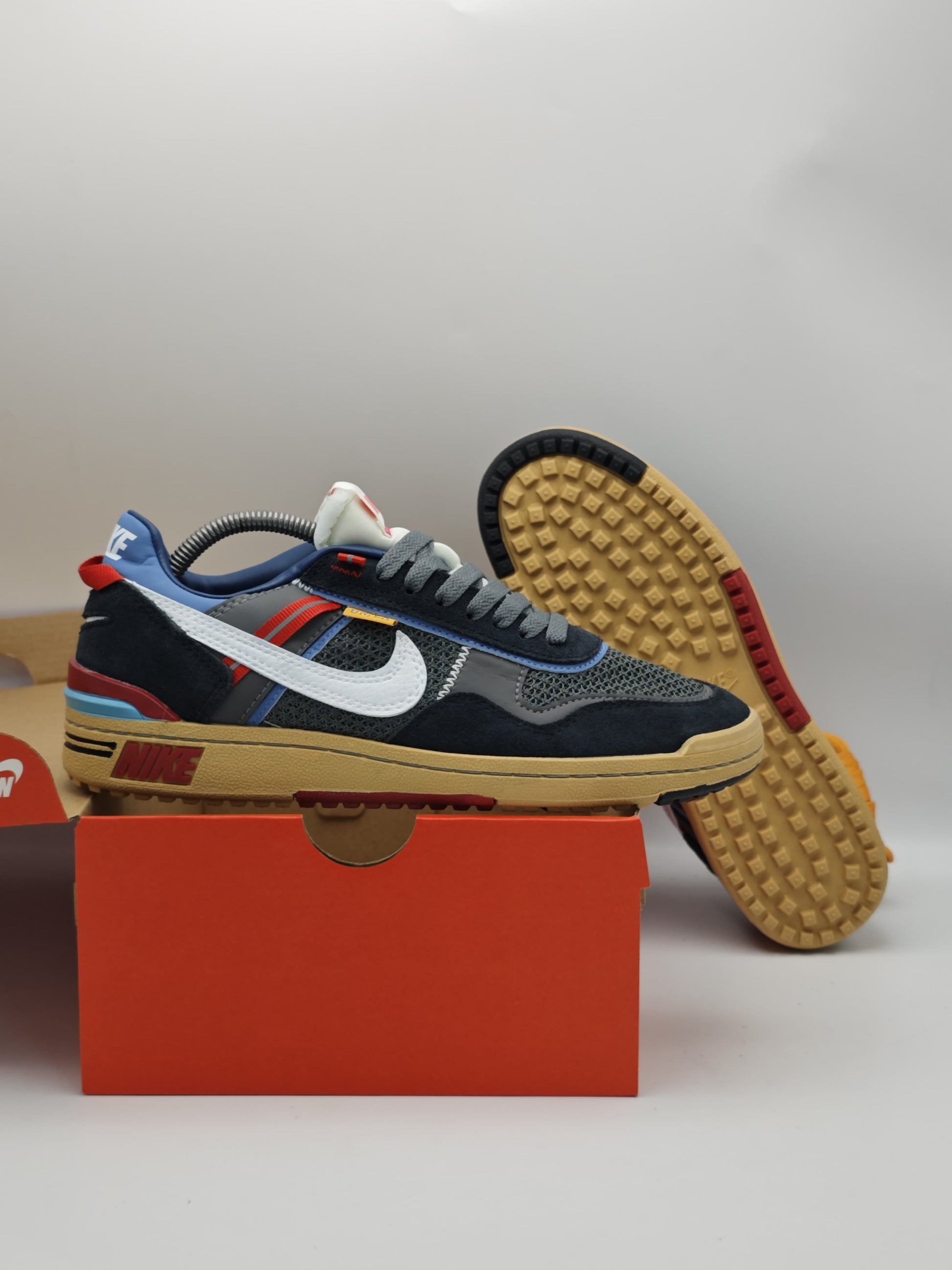Dale un giro innovador a tu outfit con los Nike Cortez x Union “Off Noir”, una colaboración que revive un ícono de los años 70 con la estética disruptiva de Union LA. Esta edición especial mezcla textiles premium, gamuza y malla transpirable con una combinación de colores urbanos: negro, rojo, azul, beige y blanco.