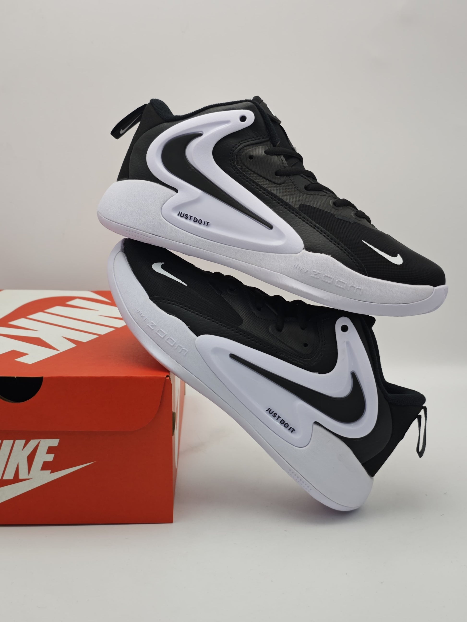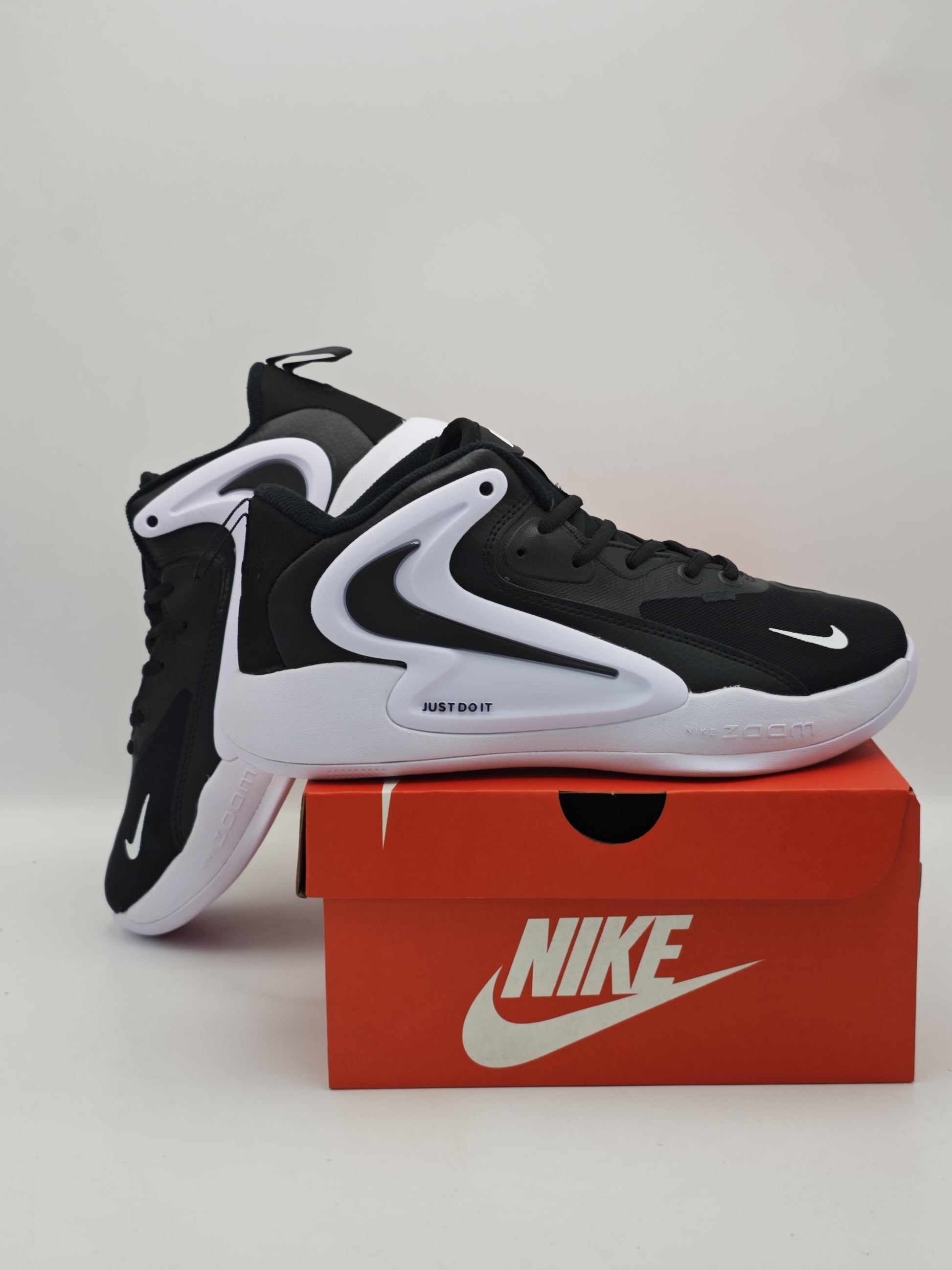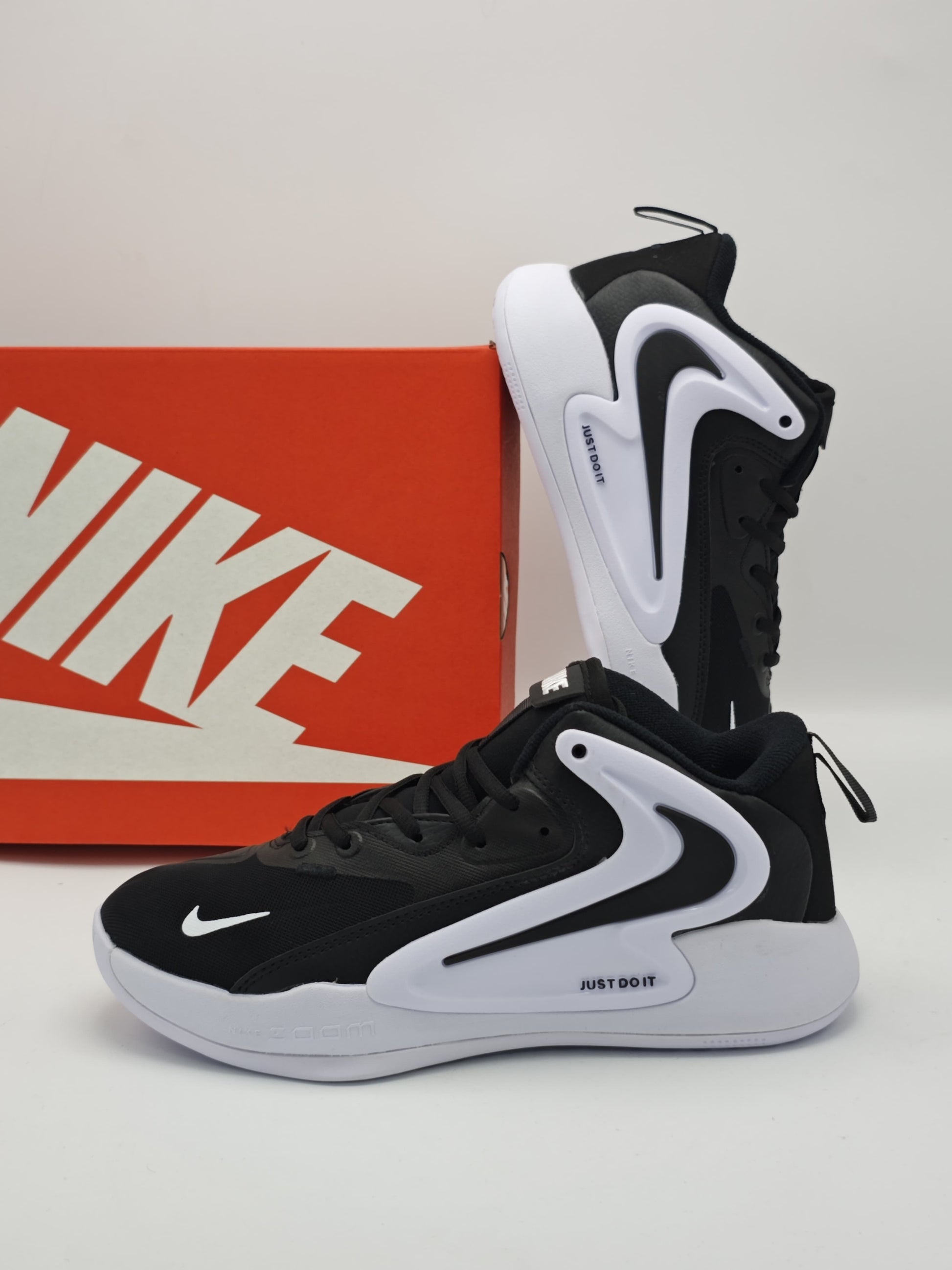 Perfectos para entrenamientos, partidos o looks urbanos cargados de actitud. Su combinación de negro clásico y blanco polar con detalles en “JUST DO IT” le da el toque exacto de fuerza y elegancia.