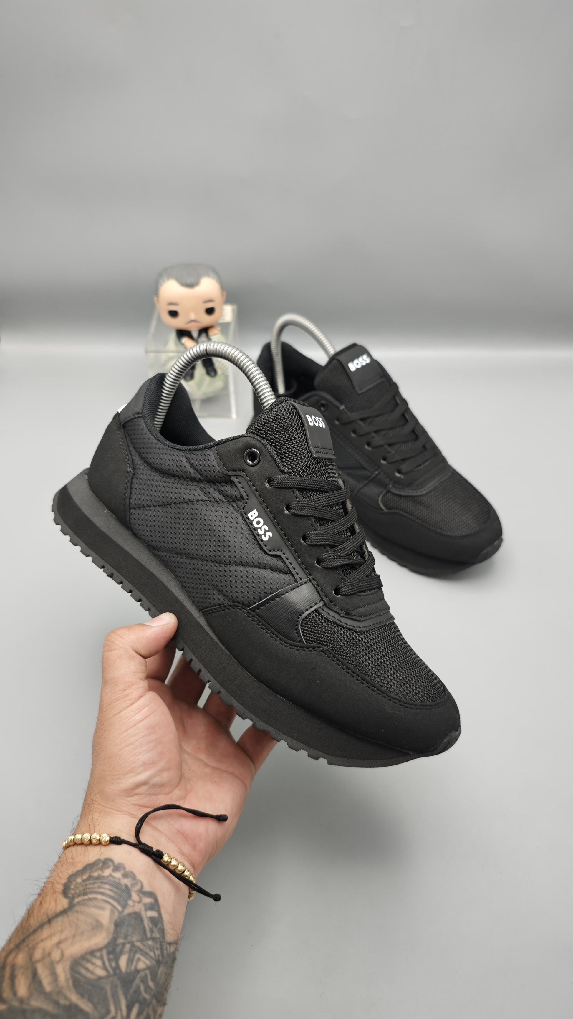 Unos Tenis inspiradas en las zapatillas de correr HUGO fabricadas en mezcla de tejido sintético revestido de goma, nylon y microfibras, y rematadas con una cinta de logos.